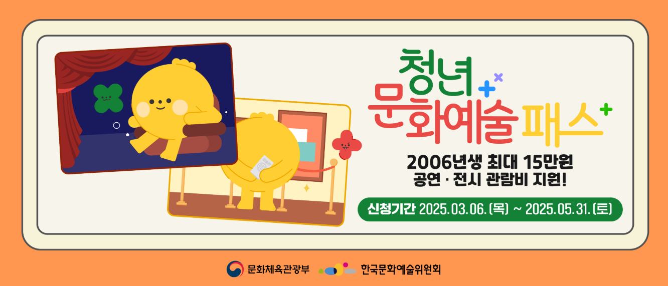 청년문화예술패스는 2025년부터 시행되는 정부 지원 프로그램으로, 만 19세(2006년생) 청년들에게 최대 15만 원의 공연 및 전시 관람비를 지원합니다.